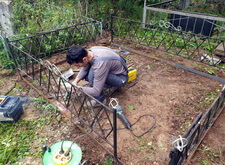 Первым делом мы принялись за уборку: убрали с территории места захоронения абсолютно всё, включая выложенную заказчиком плитку, памятники, а также сорную траву.