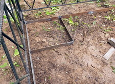 Далее мы перешли к следующему подготовительному этапу, который необходимо осуществить перед укладкой наземного покрытия: создание надёжного периметра из металлических полос. Его приварили с углам ограждения, опять-таки сверившись с уровнем.