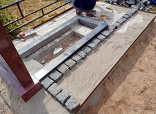 Начинаем собирать гранитное надгробье, предварительно выставив цветник.