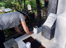 К сожалению, в самый разгар работы нас застал дождь. Так как реставрация требовала сухой погоды, то мы закрыли место захоронения плёнкой и покинули кладбище, отложив восстановление на несколько суток.