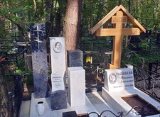 Так выглядело место захоронения на момент окончания работы: деревянный крест покрыт защитным раствором; мраморные изделия отшлифованы и покрыты гидрофобной субстанцией, стыки элементов промазаны белым герметиком; полые столбики, восстановлены; в цветнике заменена земля и посажен газон.